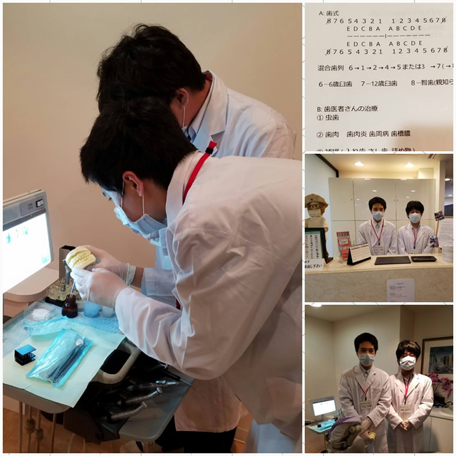 1月26日近隣中学校の職業体験プログラム。今回は男子生徒2名 自分の口腔模型を手に奮闘中。